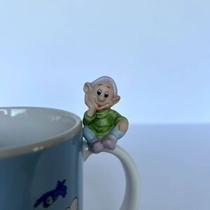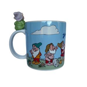 Beautiful vintage collector's mug. Snow White and the Seven Dwarfs with 3D Dopey ceramic figurine on handle. Made in Japan - not recommended for dishwasher. Small flaw as shown in photos