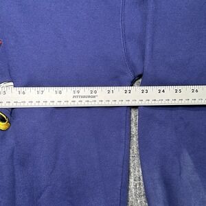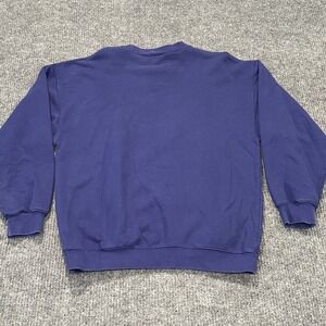 This sweatshirt is made from a cotton blend material and is machine washable for easy care. The purpleish blue color and embroidered accents make it a stylish addition to any wardrobe. Whether you're a collector or just looking for a cozy sweatshirt, this vintage Disney Store item is a must-have.