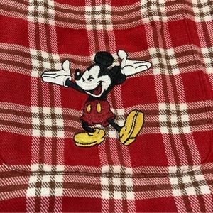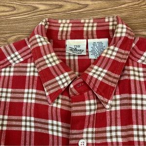 Vintage 1990s Disney Store flannel button down shirt with embroidered Mickey Mouse. Size Large.