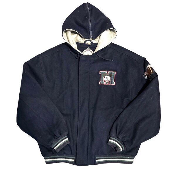 Vintage Disney Store Mickey Mouse Varsity Jacket Coat XL Navy Wool Embroidered