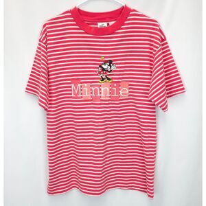 Vintage Disney Store Minnie Mouse T-Shirt Adult Striped Embroidered Tee Medium