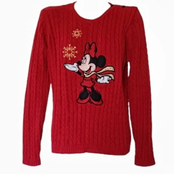 Vintage Disney Store Minnie Red Cable Knit Winter Christmas Sweater
