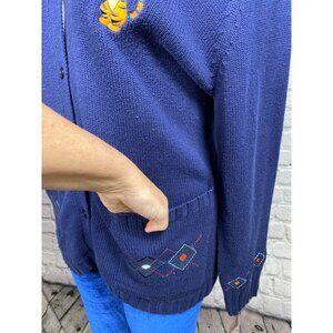 Vintage Disney Store Small Winnie The Pooh Embroidered Cardigan Sweater Navy