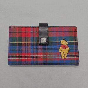 Vintage? Disney Store Winnie The Pooh Trifold Wallet Red Blue Plaid Long Coin