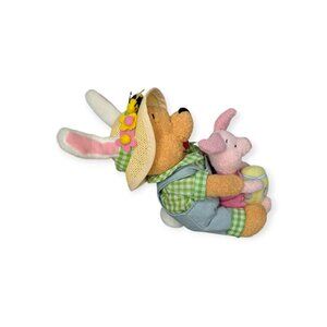 Vintage Disney Store Winnie the Pooh & Piglet Springtime Beanie Plush 6"