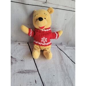 Vintage Disney Store Winnie the Pooh Snowflake Sweater Pooh Mini Bean Bag Beanie in good condition tag os a little faded.