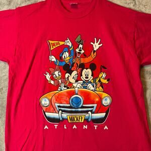 Vintage Disney Mickey and Friends Atlanta Graphic T-Shirt Pink XL Single Stitch Made in USA