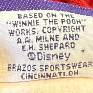 This Vintage Disney Winnie The Pooh Sweatshirt from the 100 Acre Collection is a classic pullover style with a crew neck, featuring an embroidered logo and graphic print of the beloved Winnie the Pooh character. Made in the USA with a blend of polyester and cotton, this red sweatshirt is lightweight and perfect for all seasons, whether it's winter, summer, fall, or spring. The sweatshirt is machine washable and suitable for activities like gym training, dance, or hiking, making it a versatile and comfortable piece of clothing for any Disney fan.