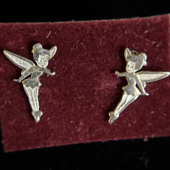 Vintage Disney Tinkerbell Sterling Silver 925 Stud Earrings Dainty Signed JCM