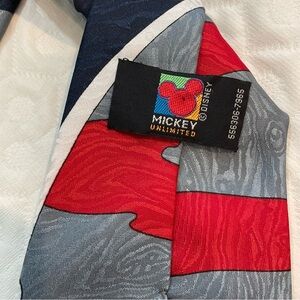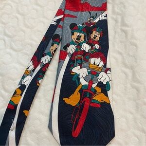 Vintage Disney Unlimited Character Neck Tie Red Gray Cycling Mickey Donald Goofy
