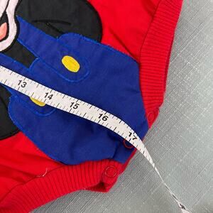 Vintage Disney Wear Mickey Overalls Romper. Baby toddler boy or girl size 18 months. One piece sun suit outfit. Red with the cutest Mickey Mouse applique on the front. Elastic in the back of the waist and adjustable button straps. Snaps at the bottom. Perfect for a trip to Disney!