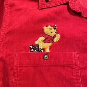 Vintage Disney Winnie Pooh Top Corduroy Y2K Retro 90s Cottage Button Red 14/16