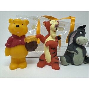 RARE! 1970'S VINTAGE DISNEY'S WINNIE THE POOH SET OF 4 RUBBER SQUEEK BATH TOYS in original package. Vinyl squeeze toy set for bath or dry play.