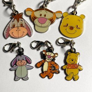 Vintage Disney Winnie The Pooh Tigger Eeyore 6 Charms Purse Zipper Pull Clip On