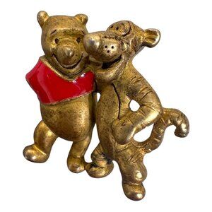 Vintage Disney Winnie & Tigger Gold Tone Enamel Brooch Pin Collectible 1.25"