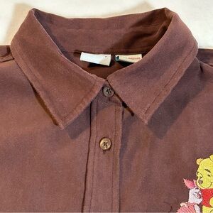 Vintage Disney button down shirt. Super soft in a lovely burgundy/maroon color. Embroidered Pooh and Piglet above front pocket with embroidered BEE REAL and bee patch/applique. Collared. Long sleeves and adjustable at cuffs.100% polyester.