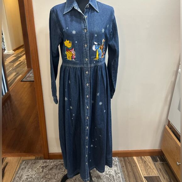 Vintage Disney Winter Jean Dress Winnie the Pooh Medium