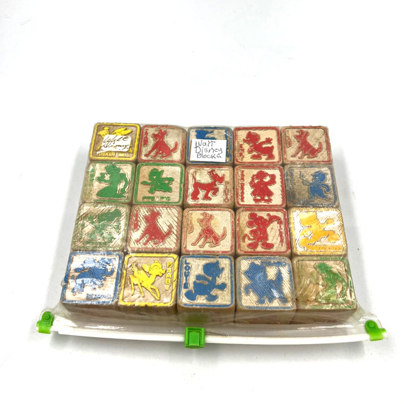 Vintage Disney wooden blocks / cubes three sided, characters, alphabet and numbers. Blocks are in good condition as pictured.