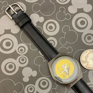 Vintage Disney x SII (Seiko) Nightmare Before Christmas Jack Skellington watch. Watch features a gun metal grey finish case with "Jack Skellington" with a full yellow moon on the dial. Case back is marked, "Tim Burton's The Nightmare before Christmas, by SII, SII Marketing International, Inc., (C) Disney MU0417, Battery #SR626SW, Japan Movt." Watch case measures approx. 33.7mm across excluding the crown, and watch with leather strap measures approx. 9" (max wrist size of approx. 7"). Watch is in good vintage condition with a light scratch on the crystal near 2 o'clock (only visible to me with magnification) and light scuffs / scratches to case. Leather strap is in good condition. Watch has a new battery and keeping time. Just a fun Disney watch!