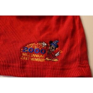 Vintage Disney Y2K Millennium Cast Member Red Thermal 2 Piece Pajama Set XXL