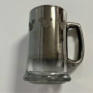 Vintage Disney mirrored / chrome color glass mug / beer glass. Disney keepsake souvenir cup