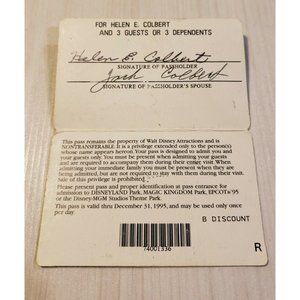 1995 Disneyland Disney World Silver Pass Charter Cast Member Rare.