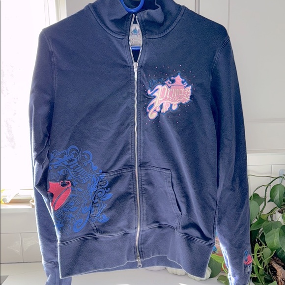 Super cute vintage Disneyland Resort Princess zip up sweater. The princess on the front, crown and royalty are embroidered. Super good quality. Says Once Upon a Time, fairytale, royalty on the front . 2 front pockets. No rips but some fading around the edge’s, very good used condition. Comes from a smoke free home.