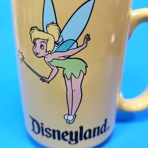 Vintage Disneyland Tinkerbell Coffee Mug Yellow Green Ceramic 15 Oz Disney