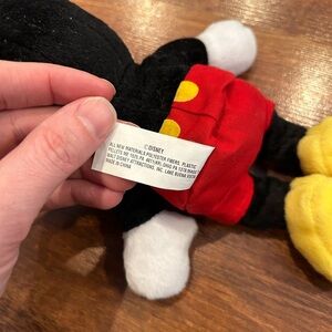 Great condition- no holes or stains. Super cute small Mickey Mouse. The center is filled with beans. Stands 8” tall