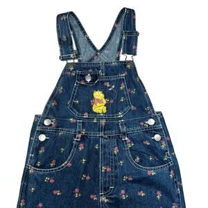 Vintage Disney's Winnie the Pooh bear embroidered AOP denim overalls floral size 7/8