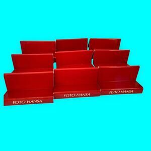 Vintage Display Stands; Red Acrylic; Logo Reads FOTO HANSA Lot of 9