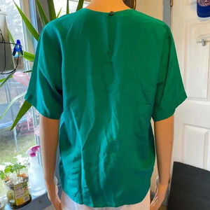 Vintage Distinction 100% Silk Green Blouse Women Size 10
