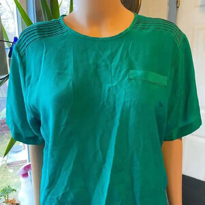 Vintage Distinction 100% Silk Green Blouse Women Size 10. Good Condition. 16feb23. Kts 8oz .