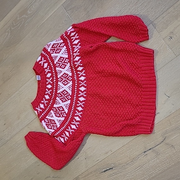 Vintage Distinction Knitted by Hand Red/White Fair Isle Sweater Women's sz L