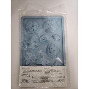 This is an unopened vintage Halloween themed Candle mold tray. Features bats, cats, jack-o-lanterns, turkey and more.