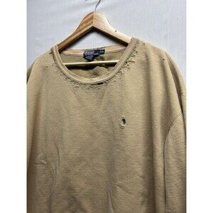 Vintage Distressed 90's Polo Ralph Lauren Tan Beige Crewneck Sweatshirt XXL
