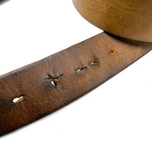 Preowned, well worn with distressing. Holes have been added and end has been trimmed. Please see all photos