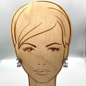 Vintage Crescent Moon Earrings with Cube Dangles, Great Grunge Vibes, Silver Tone Screw Back