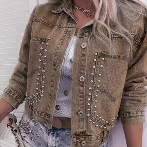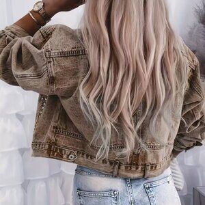 Women's Vintage Distressed Denim Jacket - Edgy Streetwear Coat with Button Front, Casual Outfit Essential for Concerts, Festivals & Casual Attire - Machine Washable Non-Stretch Denim Layering Piece, Festival Fashion, Retro Aesthetic, Timeless Design, Statement Outerwear, Fashion Enthusiasts, Concert Outfit, Loose Fit, Durable Fabric, Fashionforward Women