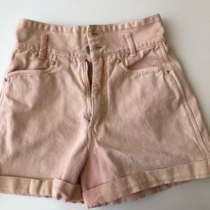 80’s super high waisted denim shorts! Light, faded peachy pink color. Some fading, but just adds to the look :) Normal vintage wear, no major flaws of note.