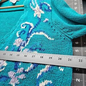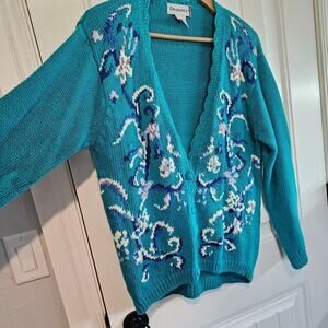 Vintage Diversity Cardigan Womens Large Petite Blue Floral Embroidered 90s Knit