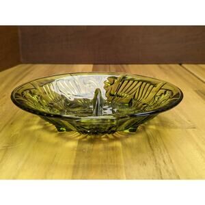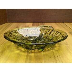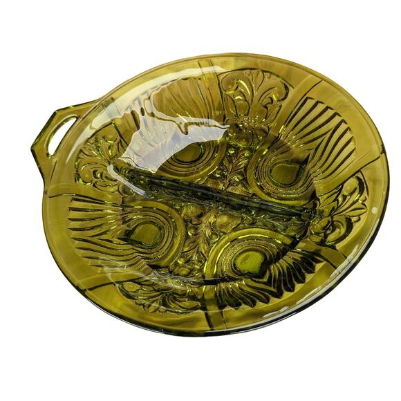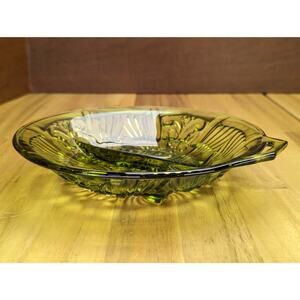Vintage Divided Indiana Glass Side Condiment Vegetable Dish Plate Green Retro