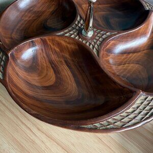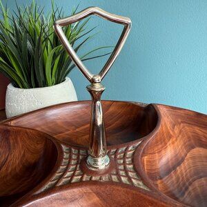 Vintage Divided Serving Tray MCM byCalifornia 328-USA Wooden Look With Handle &