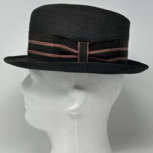 Vintage Dobbs Straw Fedora Hat Mens Size 6 1/2 Brown Ribbon Bow Hagedorn & Co Mens Wear Gadsden Alabama 50s 60s