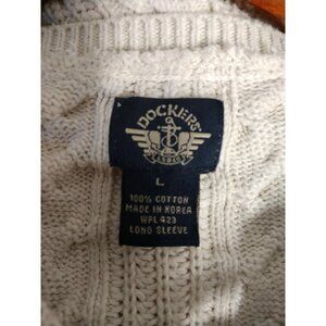 Vintage Dockers Cable Knit Sweater With Beaded V-Neck Long Sleeve 100% Cotton Ma