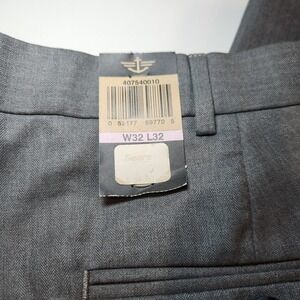 These vintage Dockers Cooper dress pants are designed for men in a relaxed fit style. They are a size 32 with a 32-inch inseam, in a stylish gray charcoal color. Perfect for a polished and comfortable look.