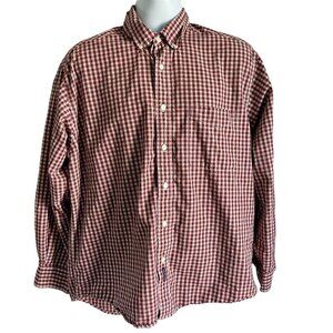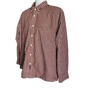 Savor a touch of nostalgia with this Vintage Dockers Long Sleeve Button Down Shirt. Made from 100% cotton, this red, black, and white shirt features a single chest pocket and a button-down collar for a classic appeal. It's in excellent condition. Men's Size Large