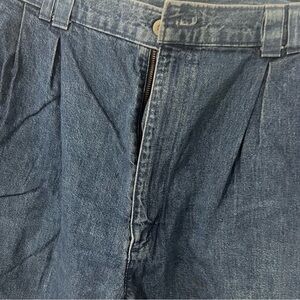 Vintage Dockers Men Pleated Relaxed Medium Wash Denim Shorts Size 38 USA Cotton
