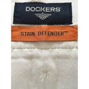 Classic Dockers men’s khakis in a light beige/tan shade, featuring a pleated front, straight leg, and cuffed hem. These pants are made with Stain Defender™ technology for easy care and long-lasting wear. Perfect for business casual, office attire, or dressy-casual events.