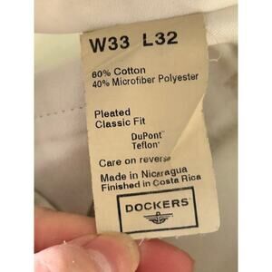Keywords: Dockers Stain Defender khakis, men’s pleated dress pants, 33x31 cuffed khakis, classic fit business casual trousers, beige pleated chinos